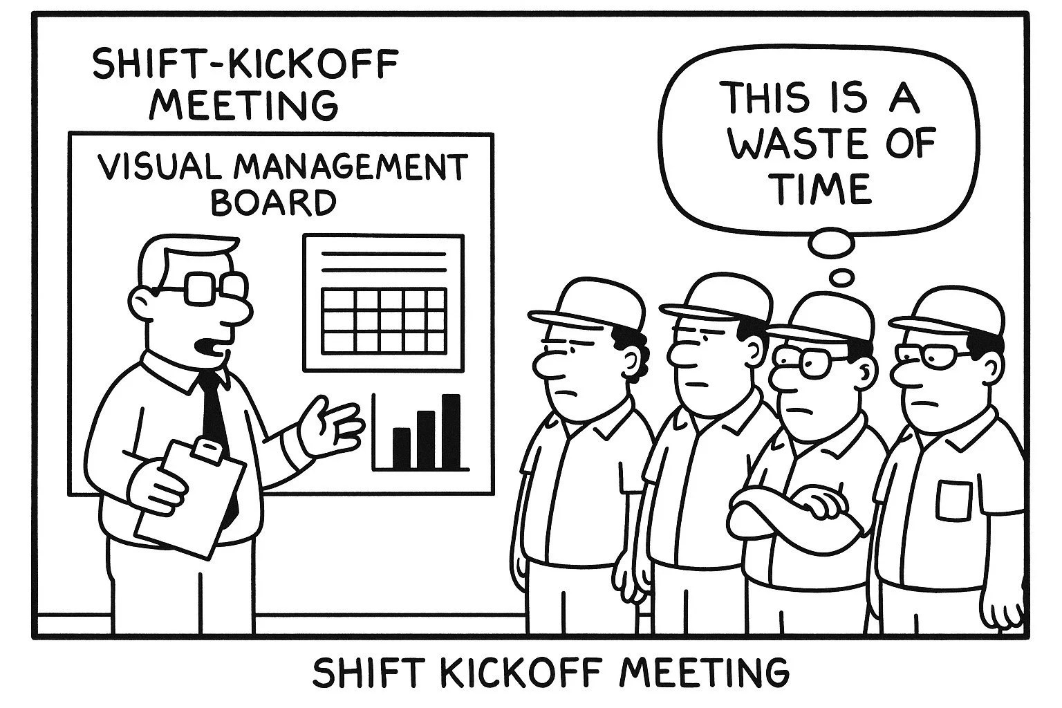 In addition, shift kick-offs were perfunctory. Supervisors shared assignments and expectations, but operators often stood silently, glassy-eyed, waiting to get back to the floor. The meetings weren’t connecting safety, engagement, and performance, they were simply “going through the motions.”
