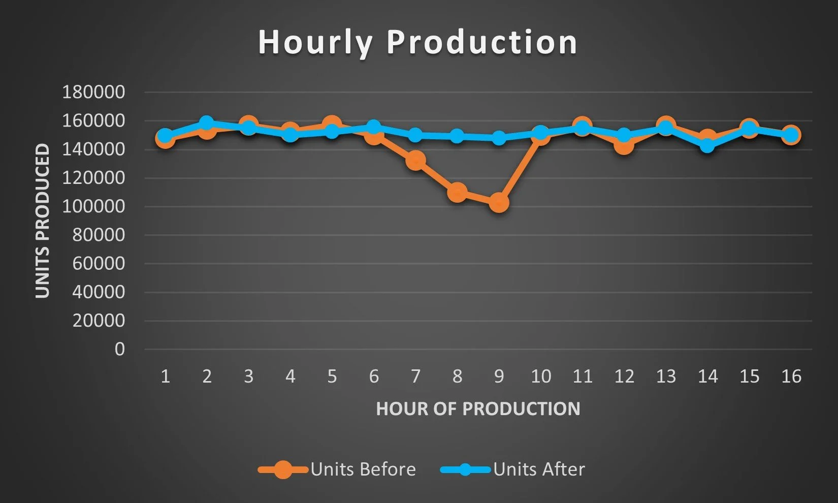 On average, over 100,000 units per day were being lost, which was a staggering gap considering each shift was expected to produce around 1.25 million units in total.